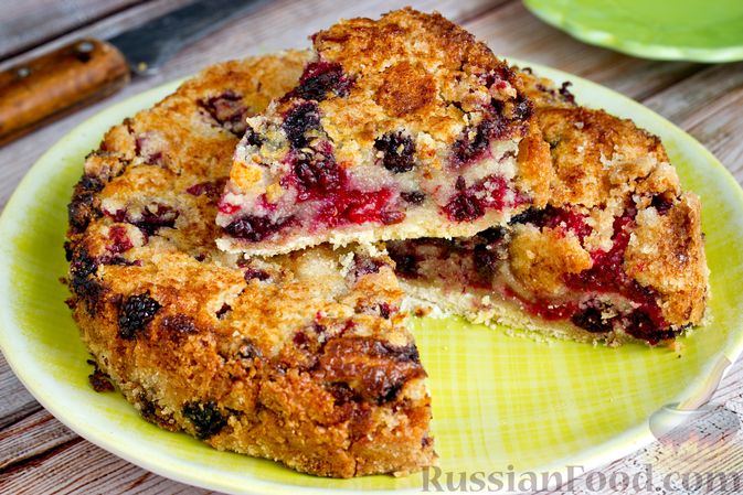 8. Пирог с ягодами готов к подаче! Подайте его посыпанным сахарной пудрой или украсьте взбитыми сливками. Приятного аппетита!