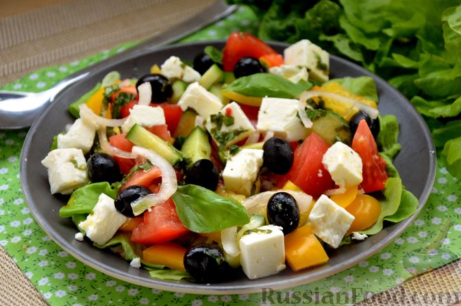 3. Вы можете поэкспериментировать с составом салата, добавив свежие овощи по сезону или заменив фета сыр на моцареллу.